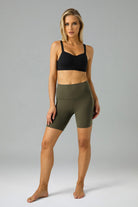 - High-waisted with a seamless waistband, these yoga shorts offer superior support and a smooth, flattering fit.